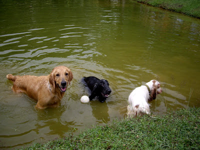 Anyway, Mommy didn't take much pictures like she usually does becoz she said she has only two hands and arms & those two hands and arms are for handling me. Our cameraman hooman brudder was not there to help. But she did manage to take a few pictures of me swimming in my favorite lake & playing with mah friends. Oh yeah, I got to swim in the lake the whole day each & everytime before it was my turn for the trial & games. It helped to revive my energy! I call it, my "Magical Lake".