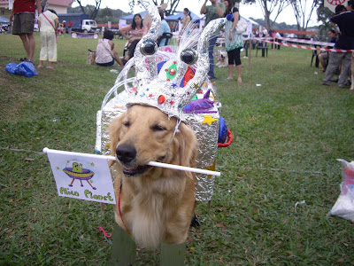 Faith entered for the Agility Basic Jumpers organized by Pet-n-You people & managed to get 2nd placing! WOW!!! Big congratulations to her! Sorry no pictures or video of her in action. I on the other hand did not join the Agility trial becoz I entered for the 'Dogathon Space Idol'. It's similar to the beauty pageant thingy except that everything is done in one round. Check out mah PAWSOME Space costume!!!